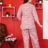 This 100% cotton comfy peach coloured floral printed Loungewear/ Night suit set is a perfect blend of comfort and style. Crafted from soft cotton, it features a beautiful flower print. Enjoy stylish comfort all day with this set. With its attractive design and prints, it is suitable for loungewear, night wear, casual wear and more.